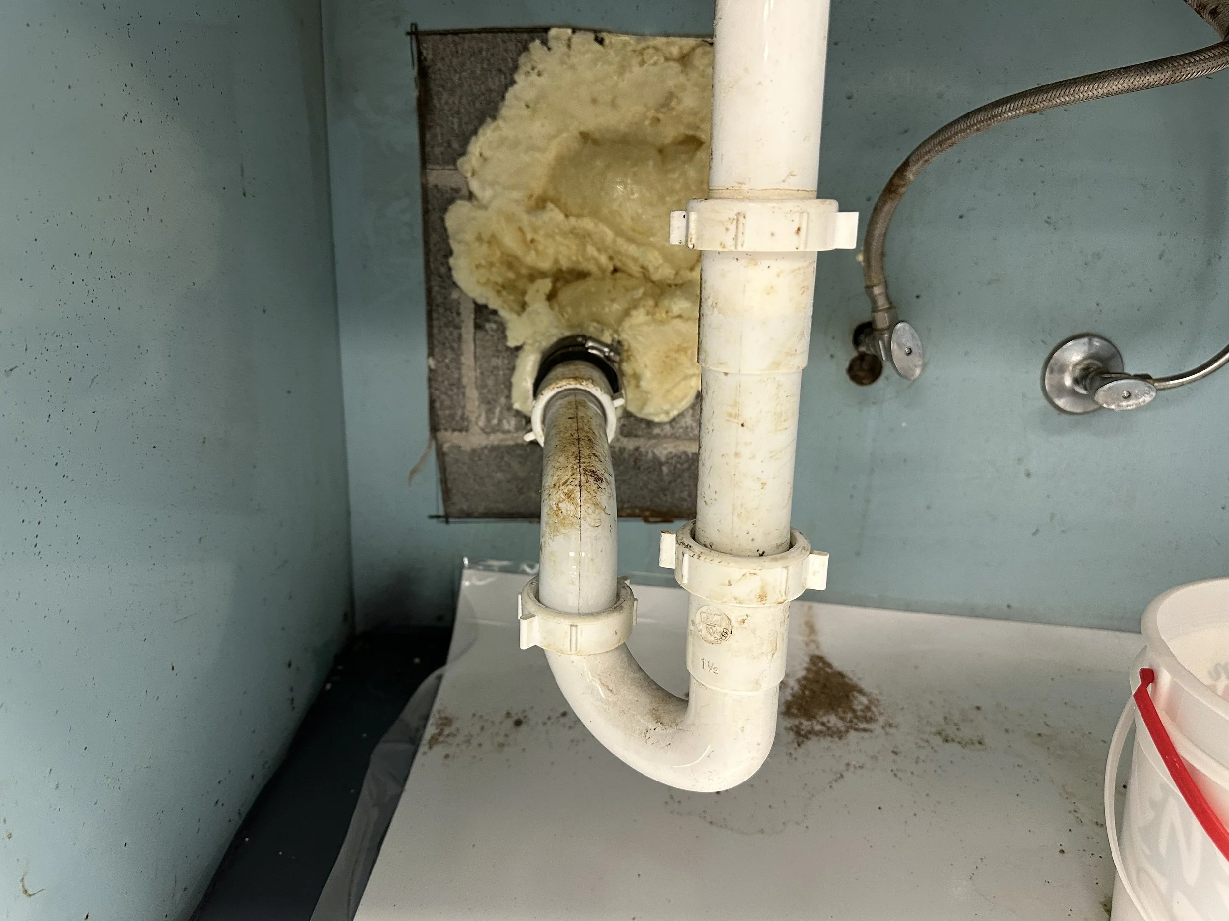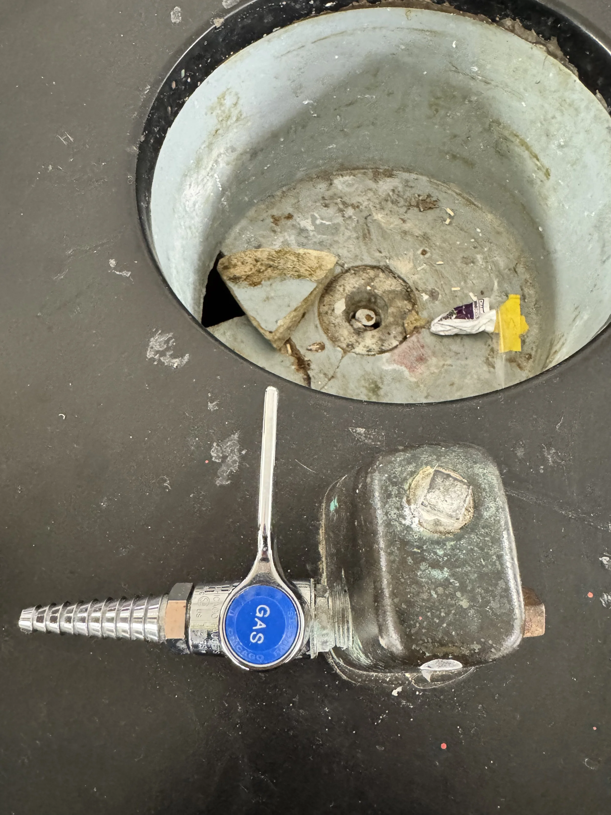 Plumbing under the FACS room sink (pictured) is beyond repair. Six plus years ago, a company cut through the wall to access and clean the pipes during a 2-3 month process to make repairs at each station.
