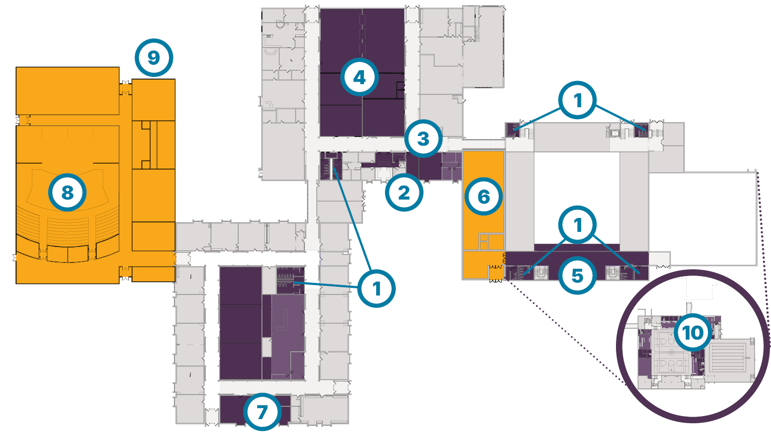 8. Addition of new performing arts center with adjacent band and choir rooms. Addition also includes room for storage of sets and equipment